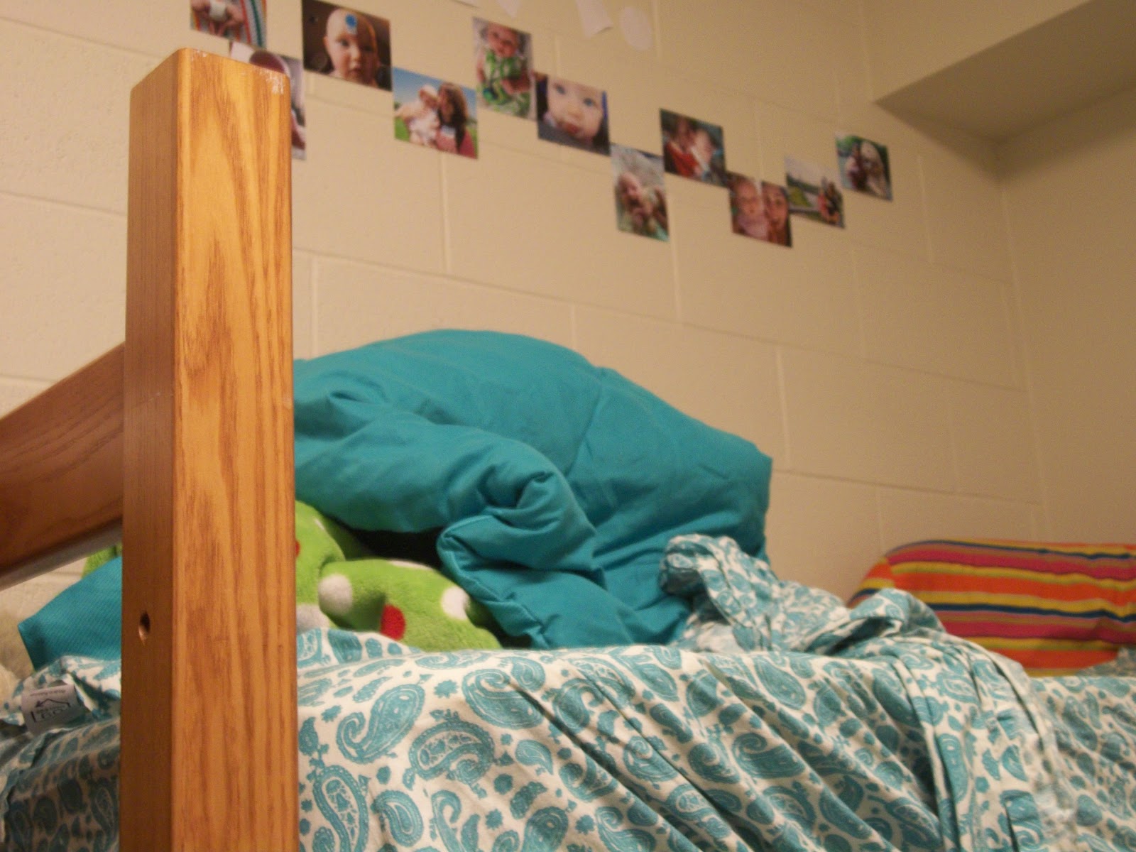 It's inviting, it's sweet, it's in the middle of the dorm room. Tootsie pops, candy necklaces, mocha brownies, gumballs, you name it. A great way to invite people in.