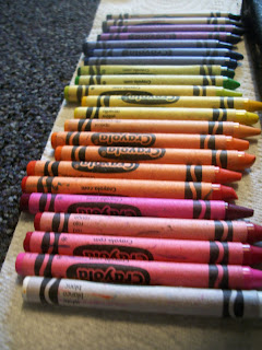 I hot glued the crayons to the top of the canvas. Don't try to put down all the hot glue and then place the crayons; it will dry out. Do 4-5 crayons at a time.