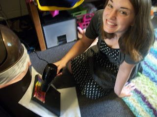 Watch the colors flow. I found that it took about 1 minute for them to start melting, but then I could move the hair dryer back and forth and watch them melt one after another.