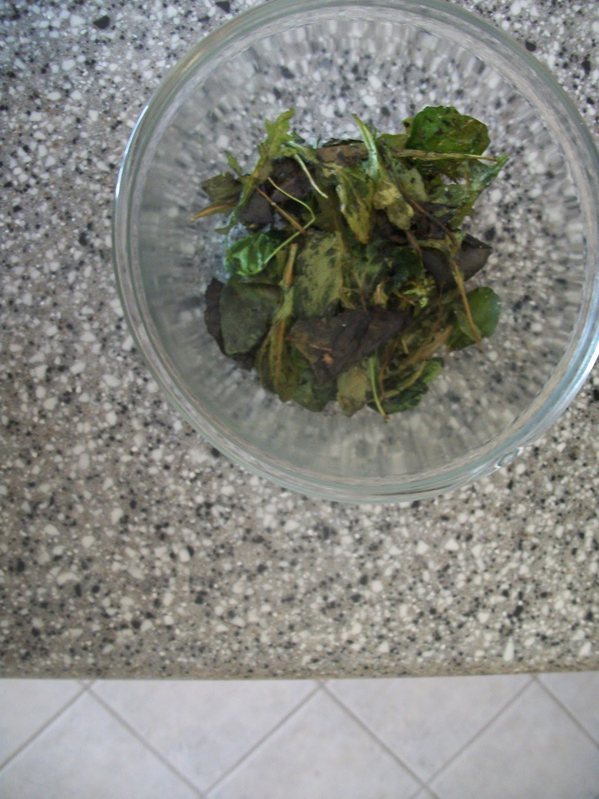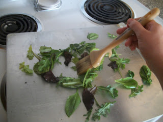 Brush a light amount of olive oil onto the the leaves. I used about a teaspoon.