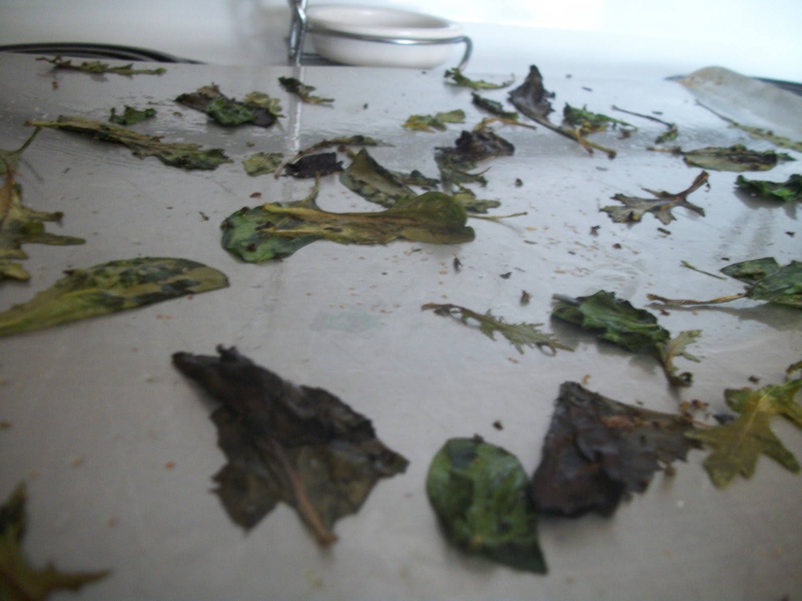Leaves should be crisp when they come out of the oven. If they are soggy, you may have used a little too much olive oil.